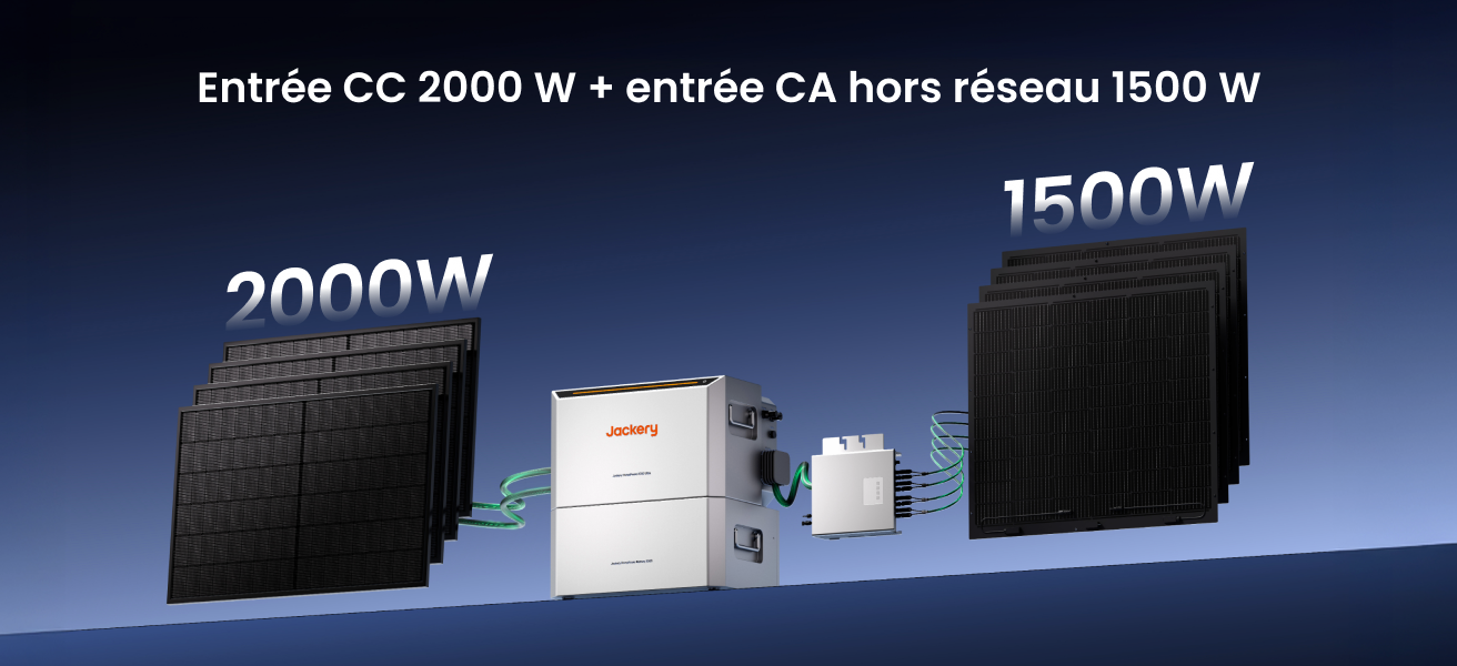 Le HomePower 2000 Ultra prend en charge jusqu’à 1 500 W via micro-onduleur et 2000 W via double MPPT solaire (permettant de connecter jusqu’à 4 panneaux solaires de 500 W chacun). En combinant ces deux modes d’entrée, le système peut atteindre une puissance d’entrée allant jusqu’à 3 500 W.
