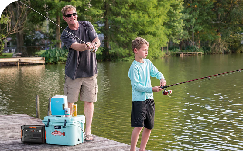 Sel, soleil et vagues – la pêche côtière et au large nécessite des accessoires de pêche robustes et fiables. Jackery propose des générateurs solaires et stations d’énergie portables capables de résister aux conditions extérieures les plus rudes.