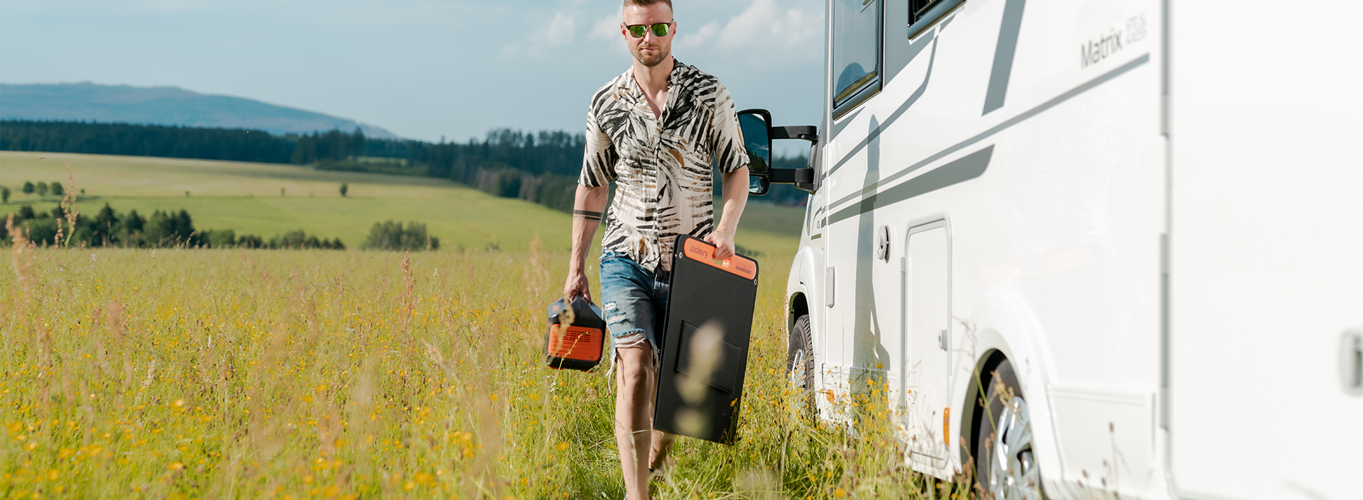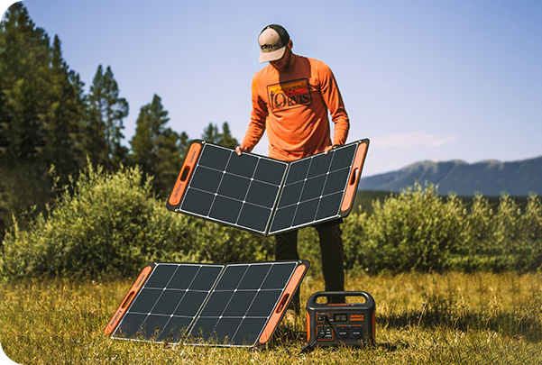 Panneau solaire SolarSaga 100W : conception pliable et poids de 4,69 kg seulement. Pratique à transporter où que vous alliez. Ajustez l'angle grâce à la béquille intégrée. Station électrique portable Explorer 1000 : elle ne pèse que 10 kg et est facile à transporter grâce à sa poignée de transport. Elle peut également se ranger dans de petits espaces pour être transportée lors de voyages en camping, en camping-car ou pour la vie hors réseau.