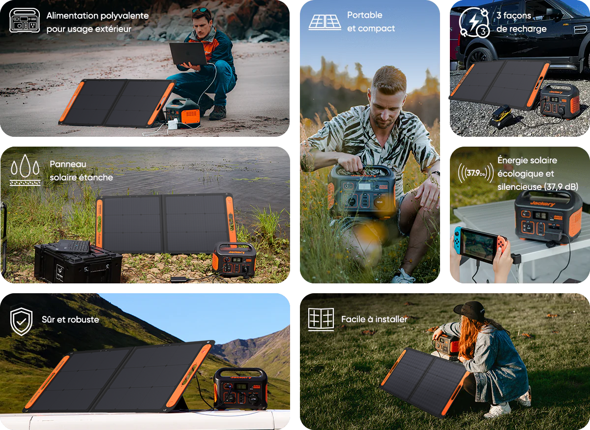 Jackery Générateur solaire 500 est une solution d'énergie solaire qui associe la station d'alimentation portable Explorer 500 et le panneau solaire SolarSaga 100W/80W. Ce générateur transforme l'énergie solaire en énergie électrique et l'entrepose dans la centrale électrique portable pour une utilisation ultérieure. Ce générateur solaire représente une source d'énergie fiable et écologique pour les campeurs, les véhicules de loisirs ou comme secours d'urgence.