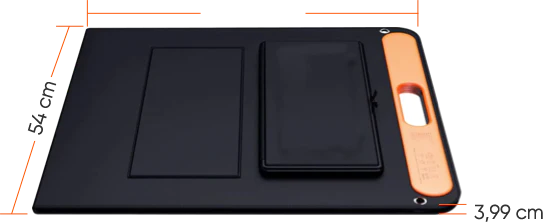 Le panneau solaire 80W est livré avec une mallette de transport réfléchissante. Il permet de générer de l'énergie des deux côtés grâce à la fibre optique réfléchissante, et l'angle de réflexion peut être ajusté, grâce à la position de collage de la bande magique de l'étui de transport.