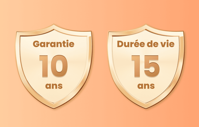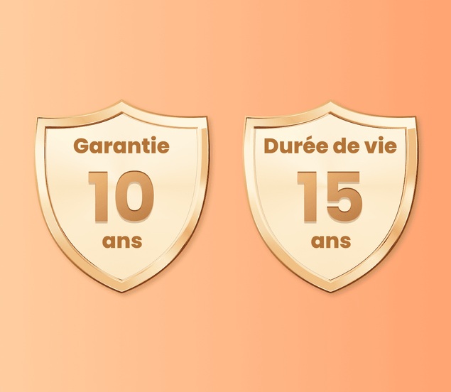 Avec une garantie de 10 ans, une durée de vie conçue de 15 ans et une résistance à l'eau et à la poussière IP65, votre investissement reste protégé et fiable.