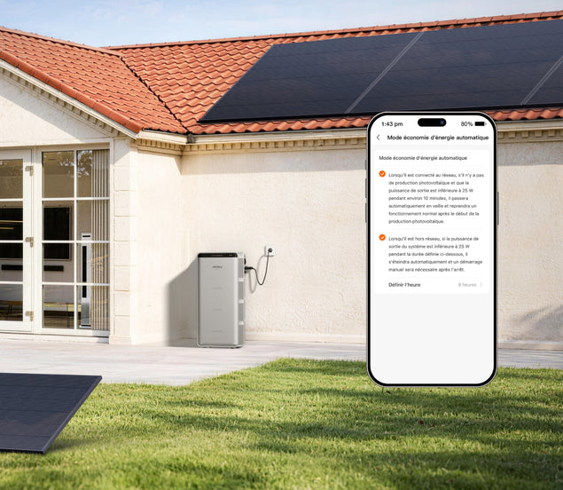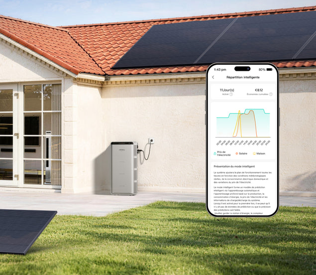 Le système de stockage d'énergie de balcon Jackery maximise l'autoconsommation solaire : l'énergie produite est utilisée immédiatement et le surplus est stocké dans la batterie pour alimenter votre maison la nuit ou par temps peu ensoleillé, réduisant ainsi vos factures d'électricité.