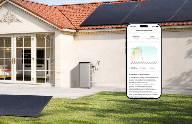 SolarVault 3 Pro Max AC ajuste intelligemment votre utilisation d'énergie en accédant aux prix de l'électricité en temps réel auprès de 860+ grands fournisseurs européens comme Nordpool, EDF, Engie. Il se charge automatiquement lorsque les prix sont les plus bas et se décharge pendant les heures de pointe, vous aidant à recharger toujours au meilleur prix.